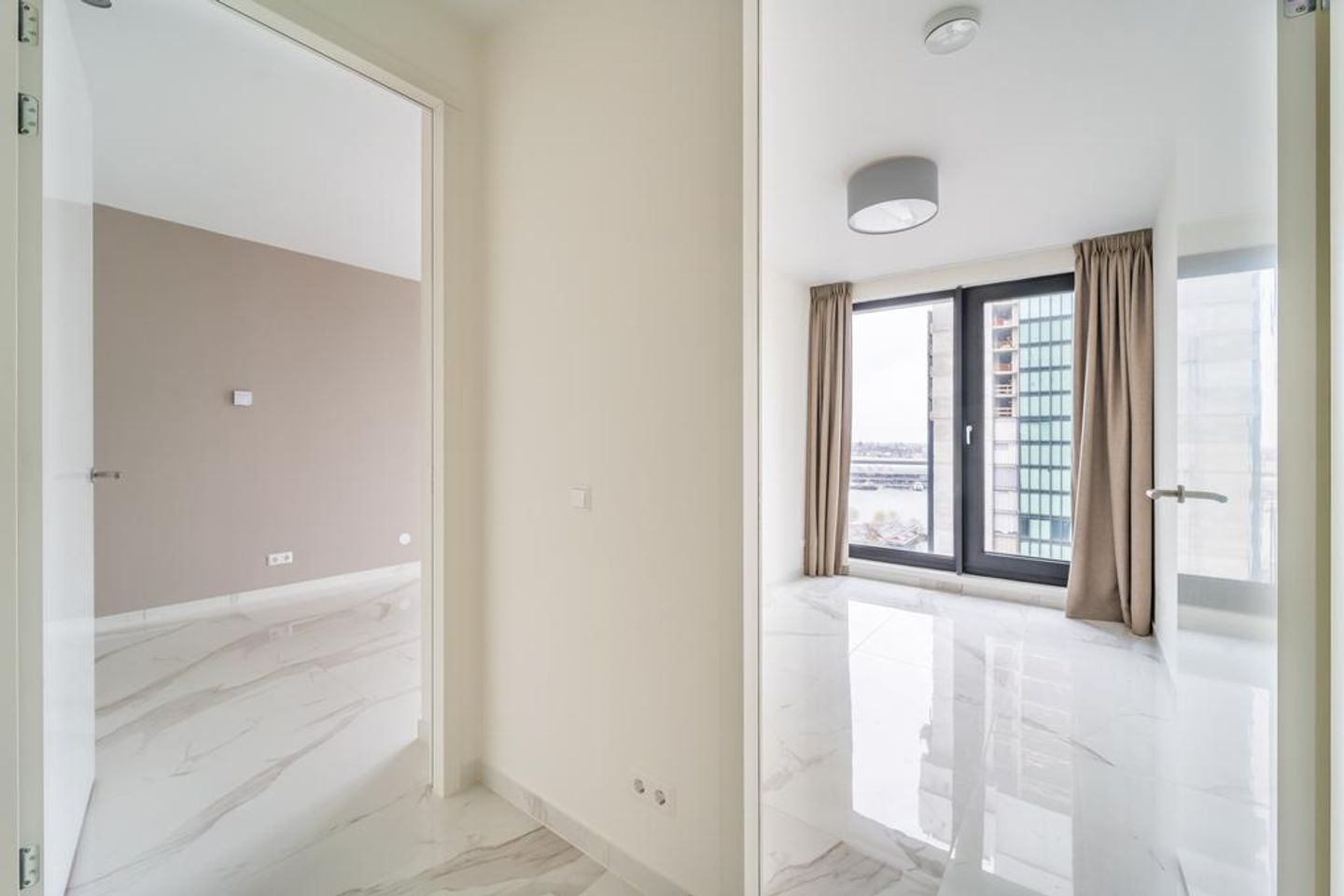 Het appartement is gloednieuw, de nieuwe bewoners hebben het BOLD gebouw net betrokken.