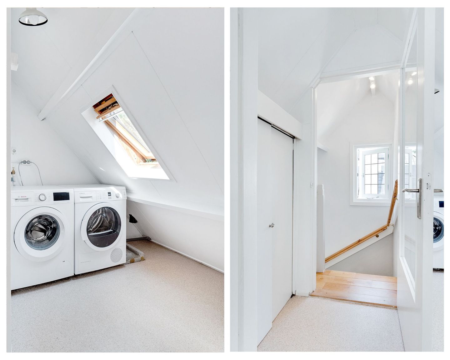 Tweede verdieping: de overloop verleent toegang tot een zeer royale (slaap)kamer met kastruimte en de laundry.