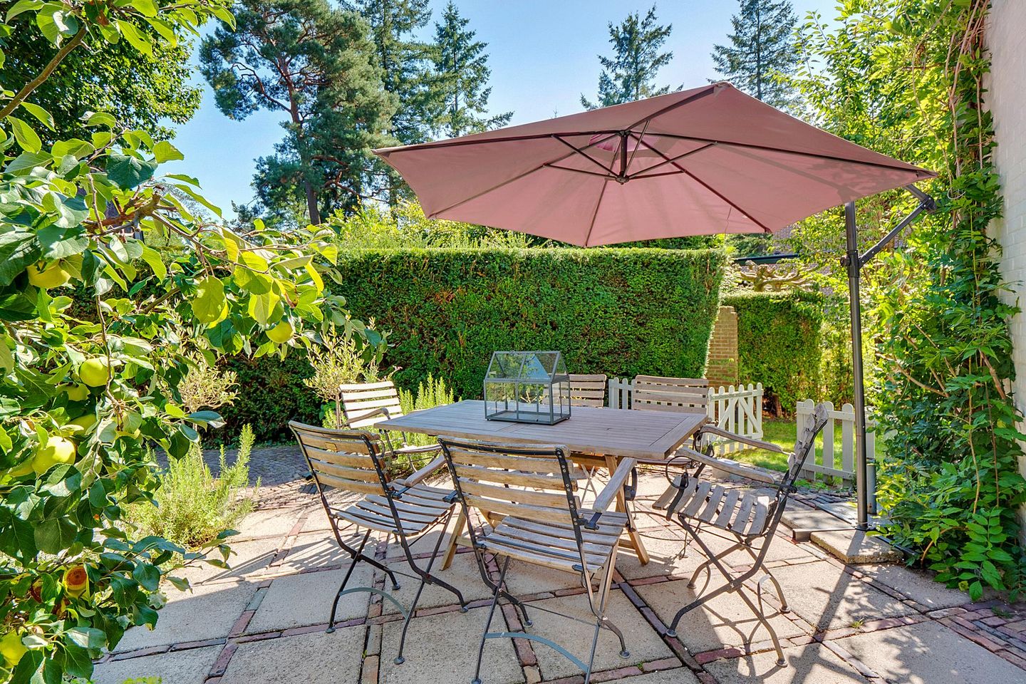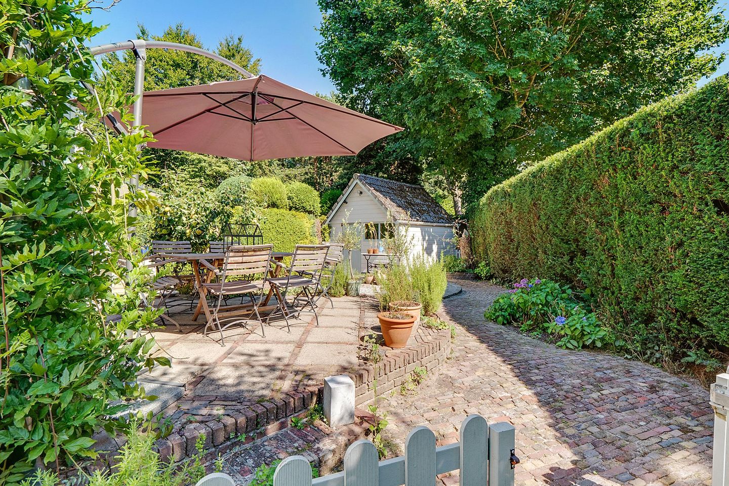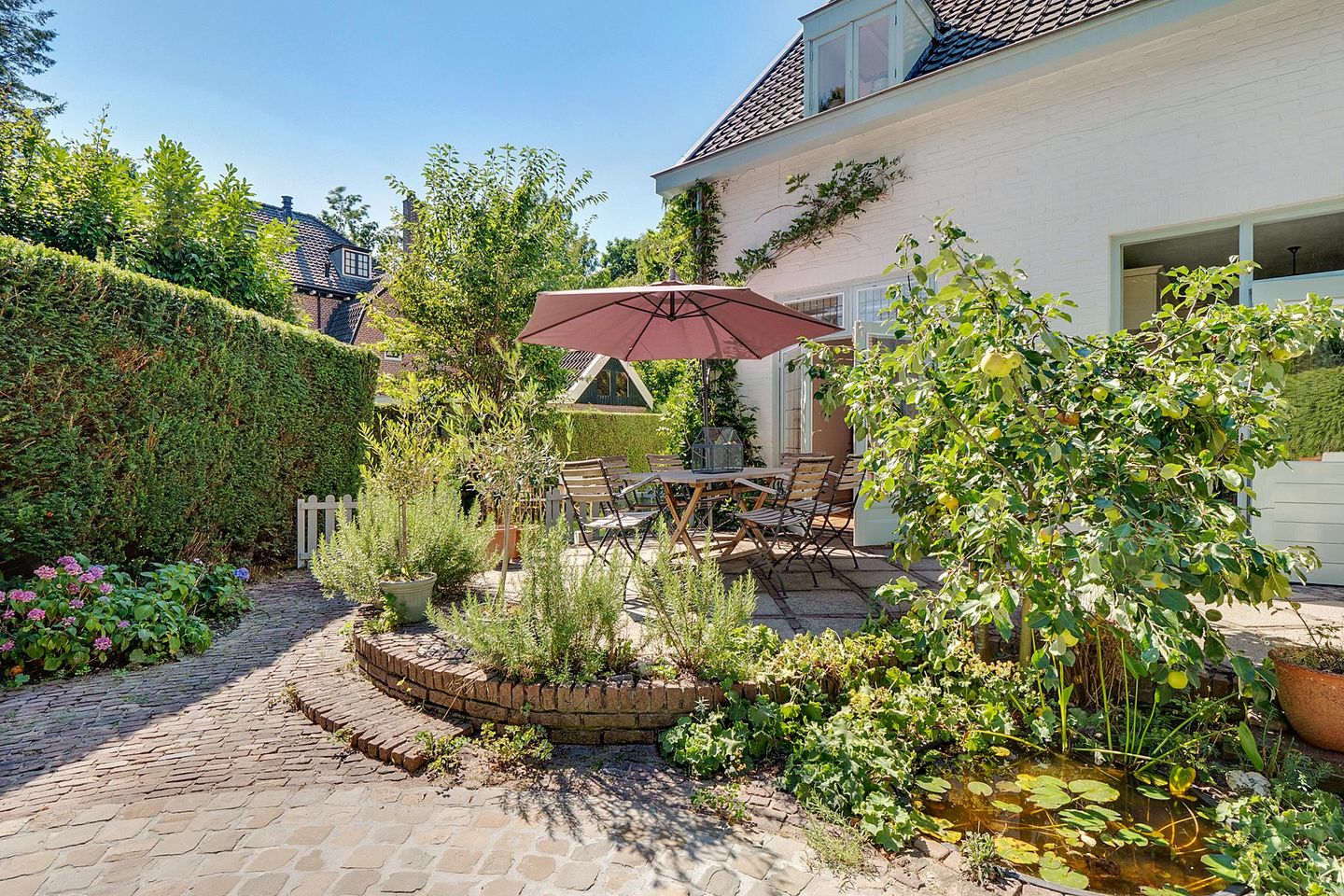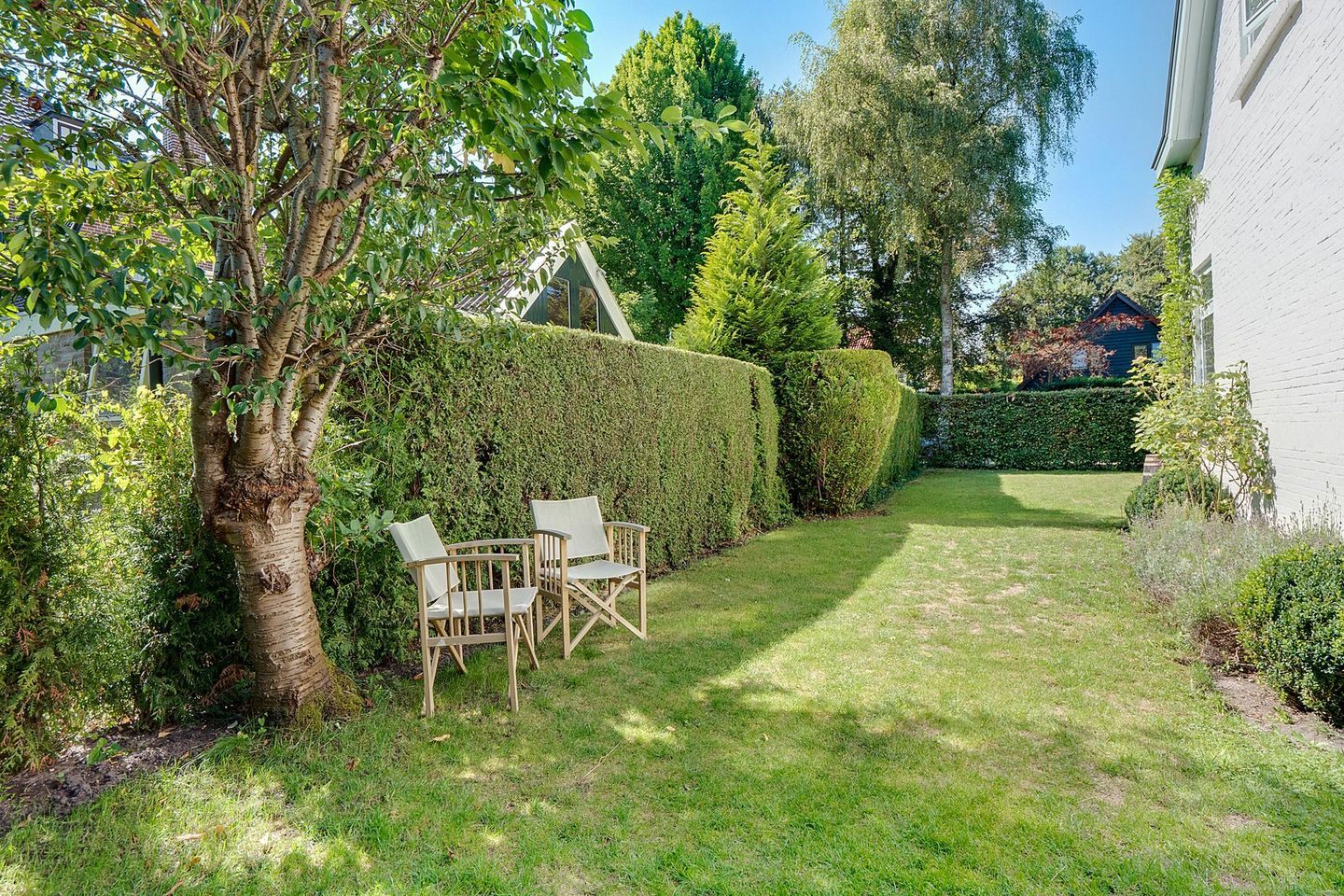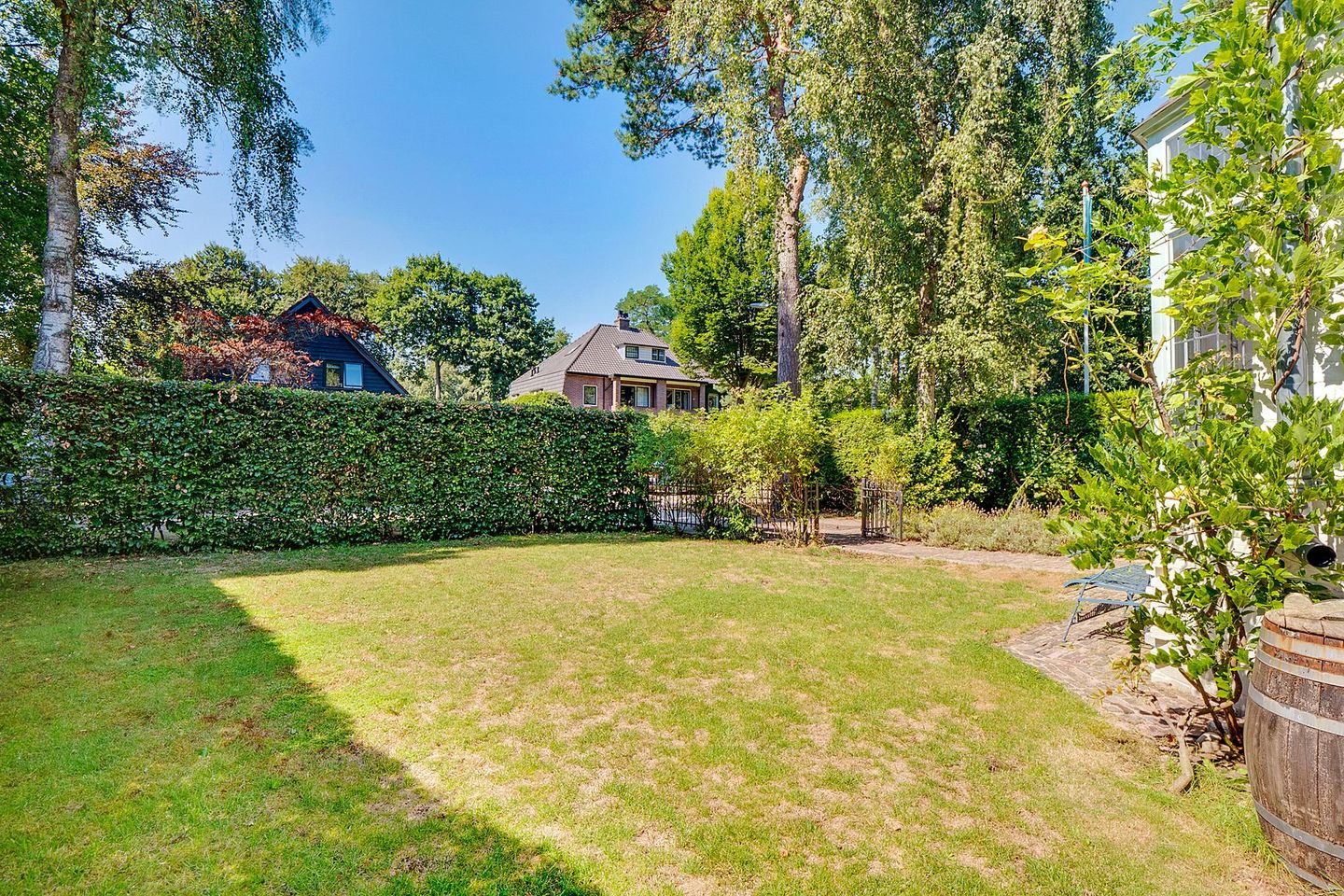 Vanuit de hal bereikt u tevens de klassieke keuken, deze is voorzien van diverse inbouwapparatuur. Vanuit de keuken heeft men toegang tot de zonnige tuin met veel privacy.