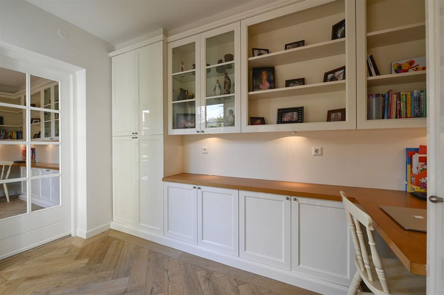 Het huis beschikt over een separate werkkamer/praktijkruimte op de verdieping van de zij-uitbouw (ca. 2000) met een eigen entree, toilet en trap. Deze ruimte kan op meerdere manieren gebruikt worden.
