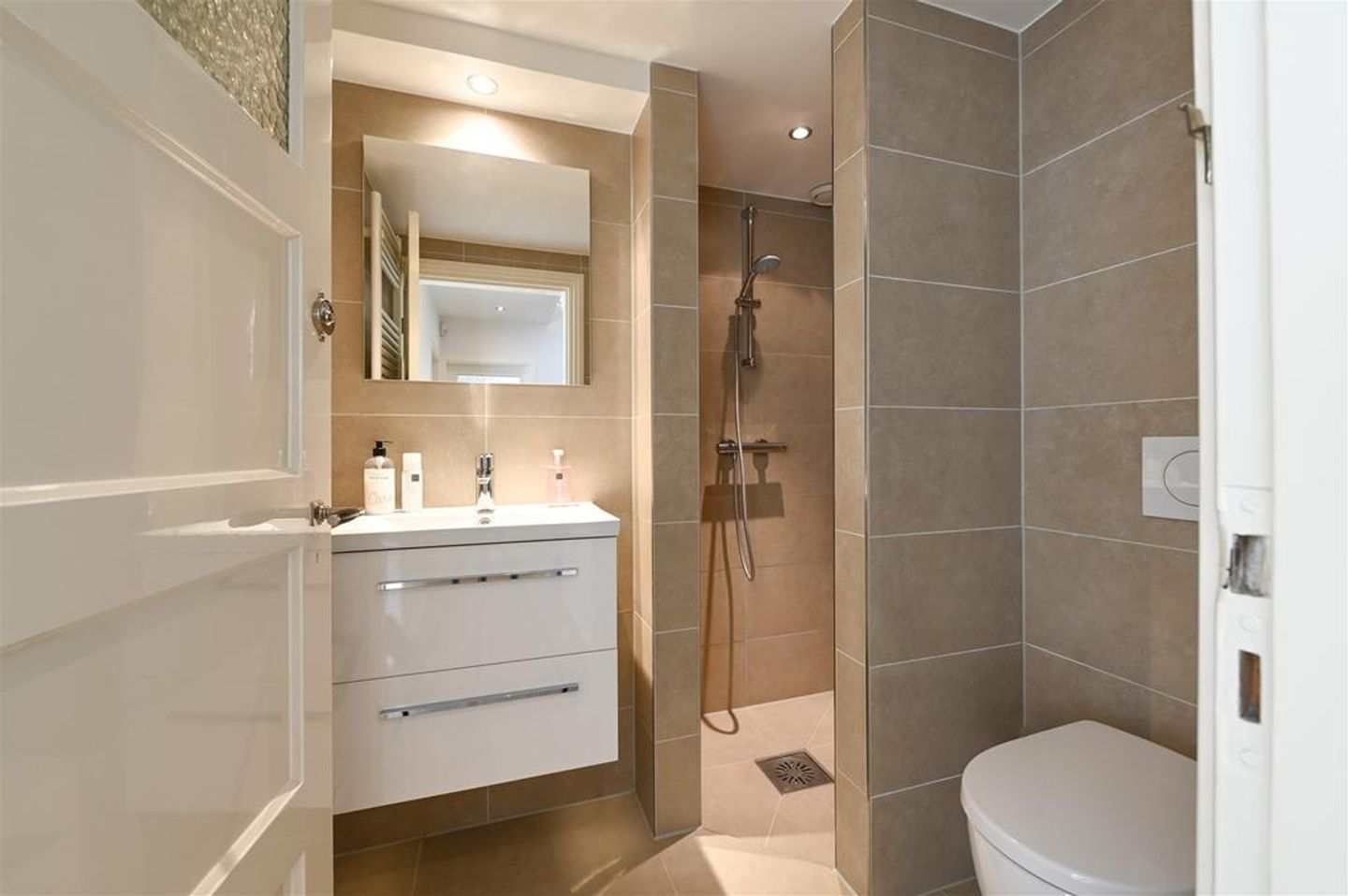 Overloop, 3 mooie slaapkamers en 3e een badkamer v.v. douche, wastafel en toilet.